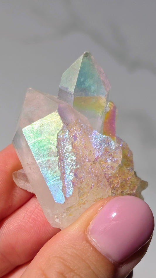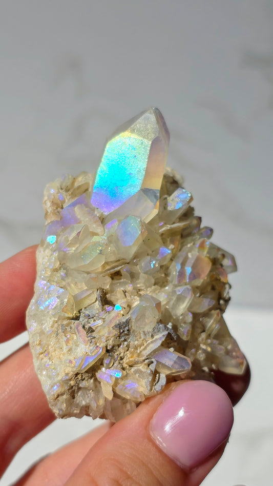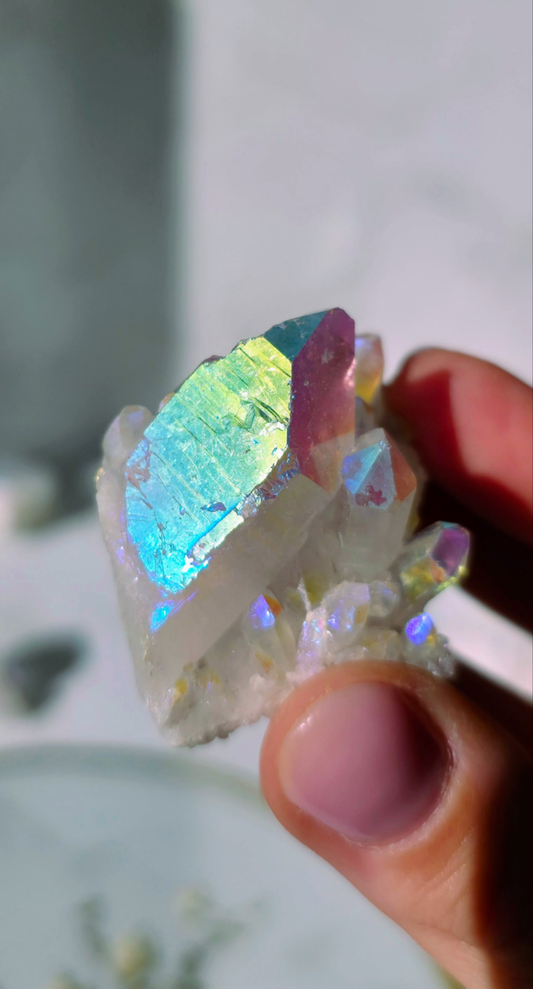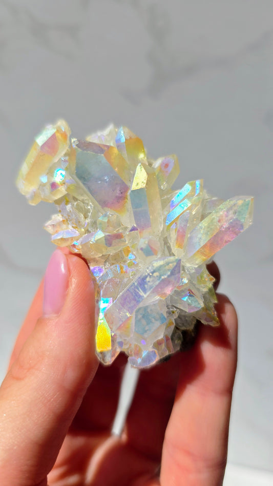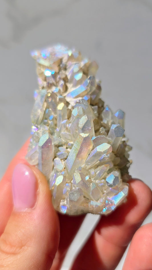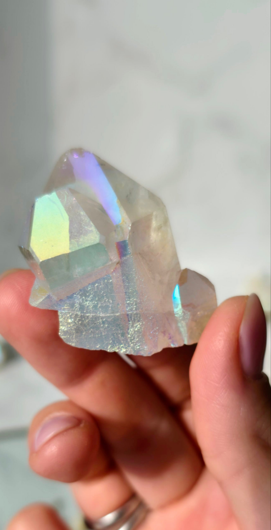 Angel Aura Bergkristall Cluster - Schillernder Regenbogen-Glanz aus Deutschland