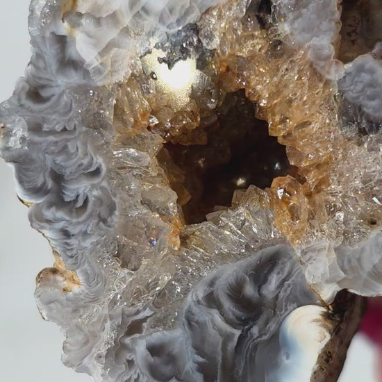 Achat Quarz-Geoden sind begehrte Sammlerstücke und gelten als kraftvolle Energieträger, die Räume mit Dynamik und Wärme erfüllen.