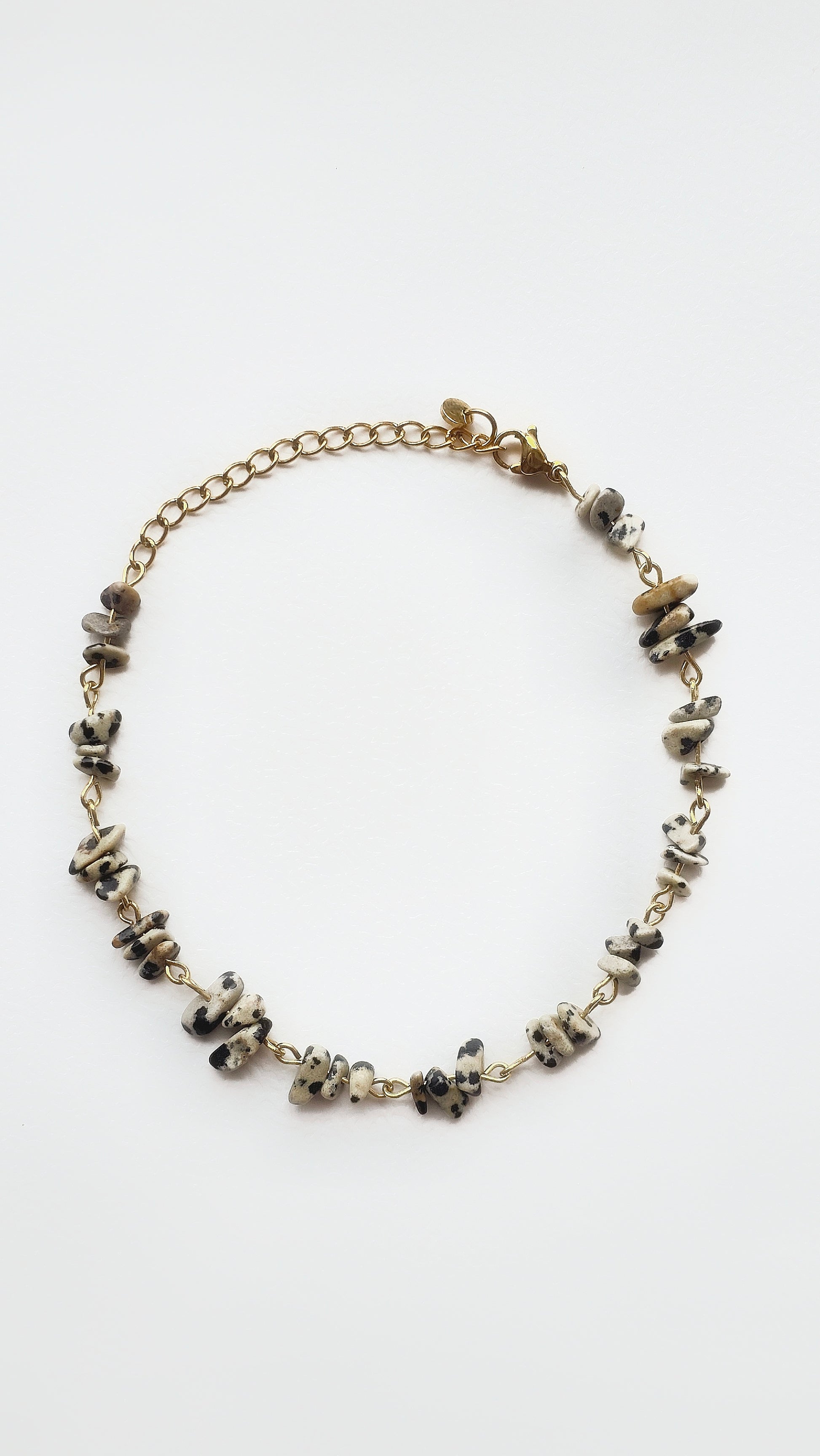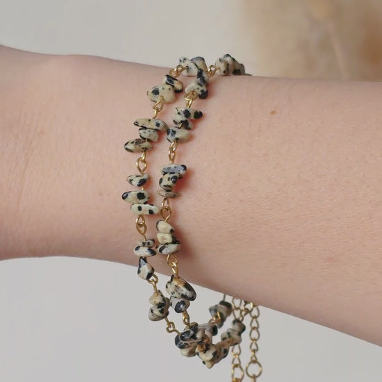 Dalmatiner Jaspis Armband · Splitterperlen · Goldener Edelstahl
