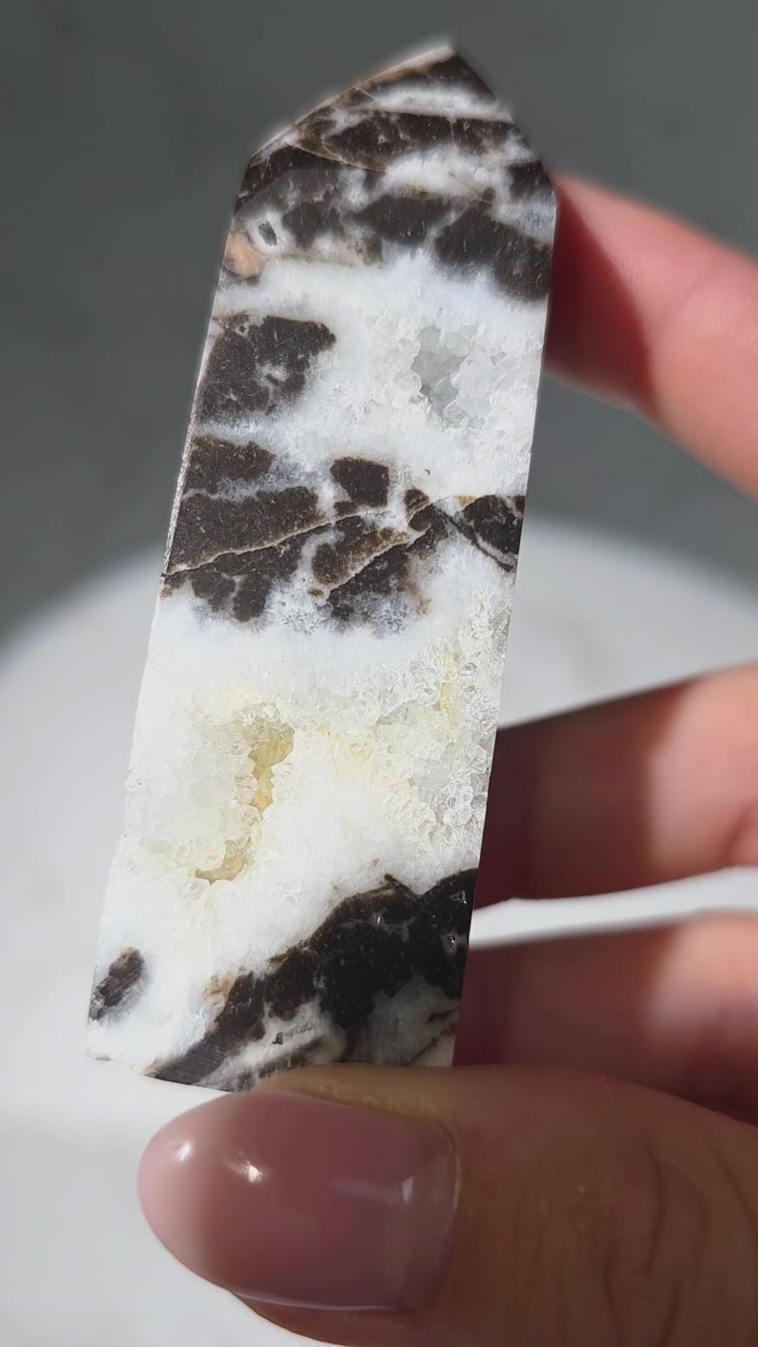 Bitte beachte: Jeder Sphalerit Turm ist ein Naturunikat. Farbe, Glanz und die Form der Drusen können leicht variieren – dein Stein ist in jedem Fall einzigartig.