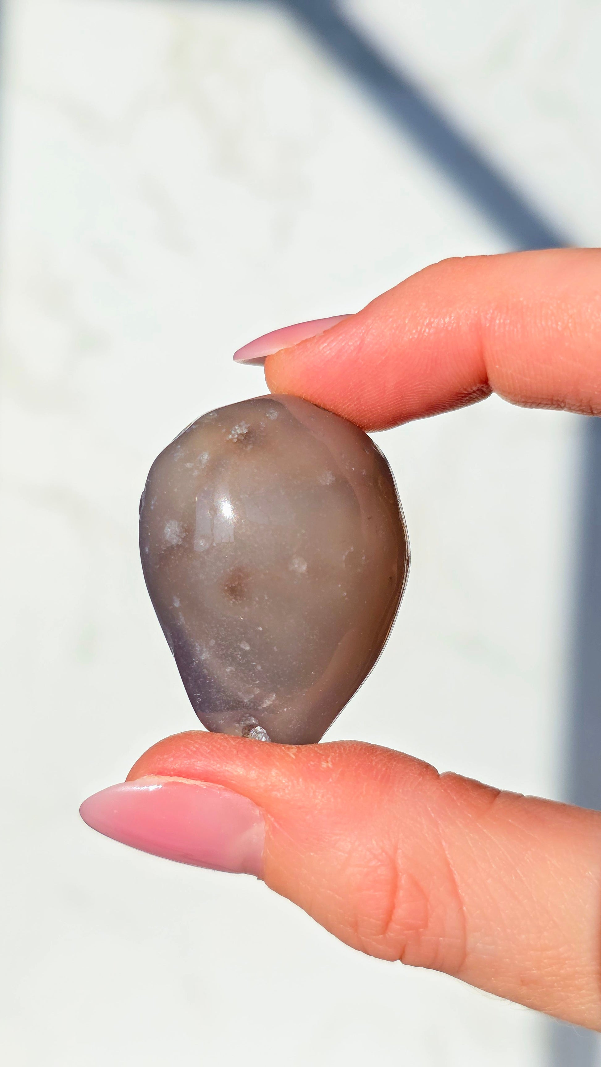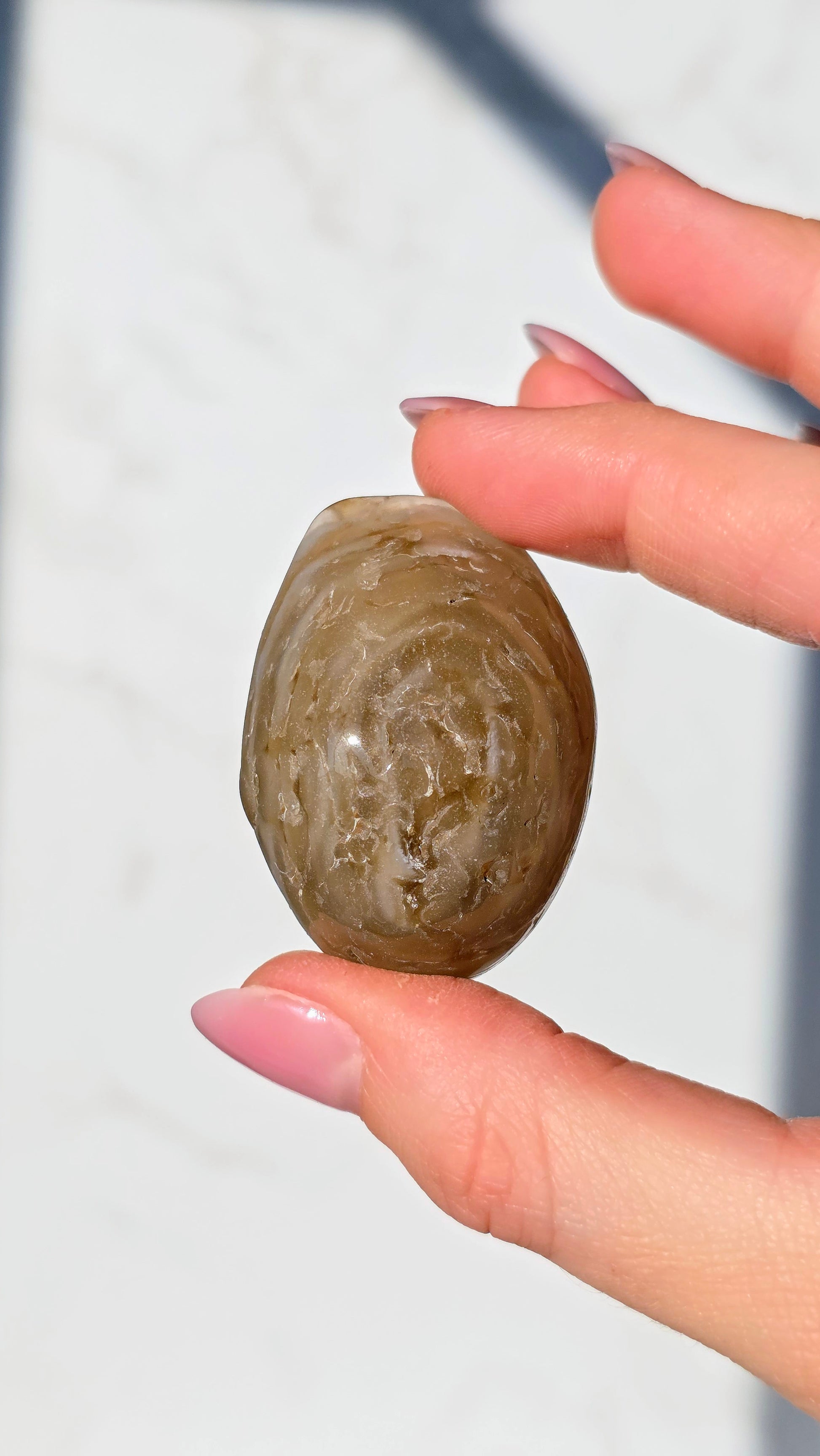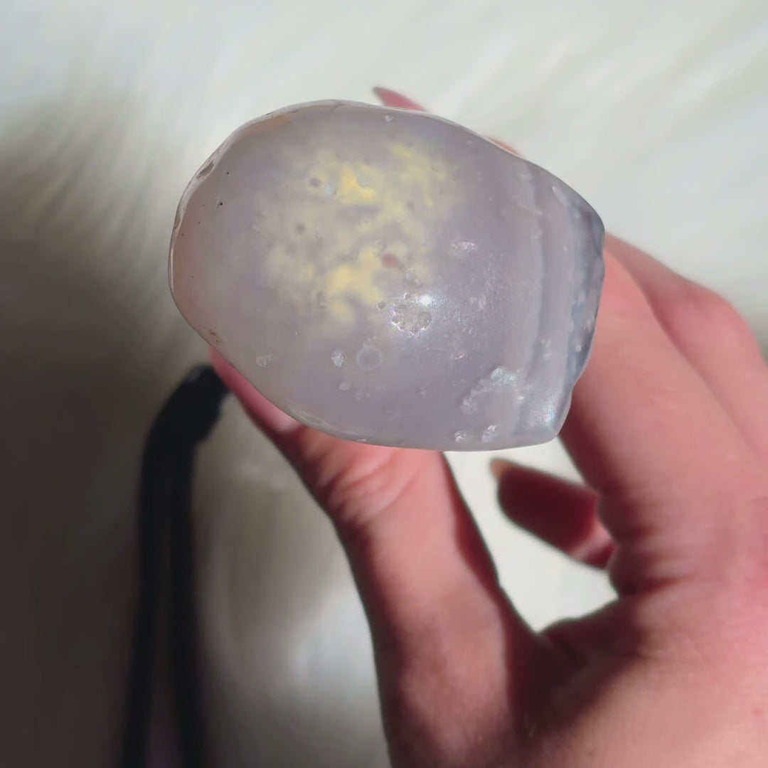 Der geheimnisvolle Enhydro Wasserachat birgt ein uraltes Naturwunder in sich: eingeschlossene Wasserblasen, die sich in der Bewegung sichtbar mitbewegen. Dieses Wasser ist zum Teil über 100 Millionen Jahre alt und wurde in mikroskopisch kleinen Hohlräumen eingeschlossen – ein echtes Wunder der Natur!