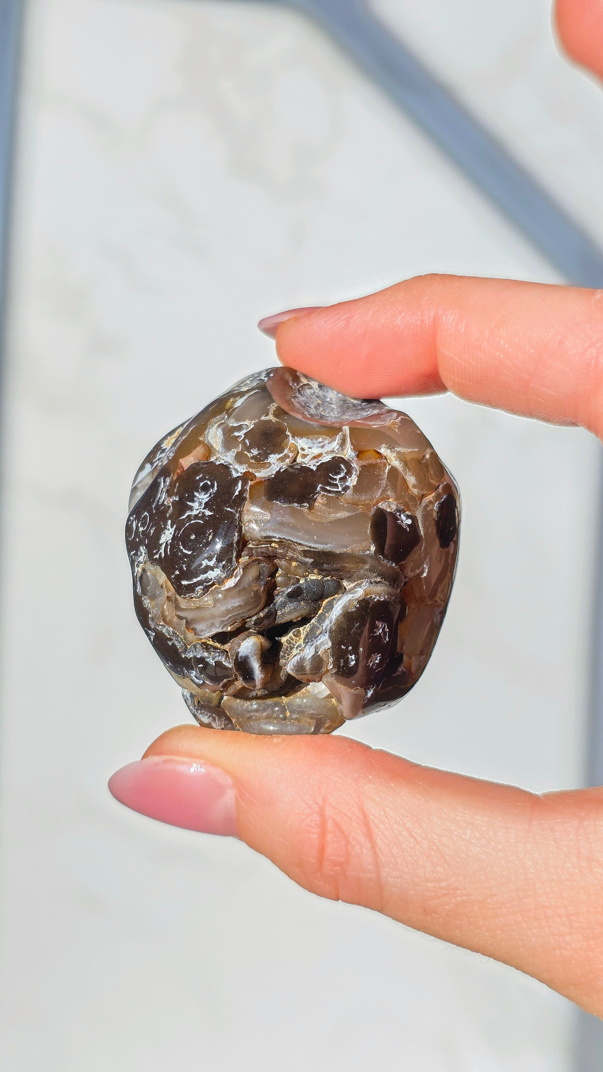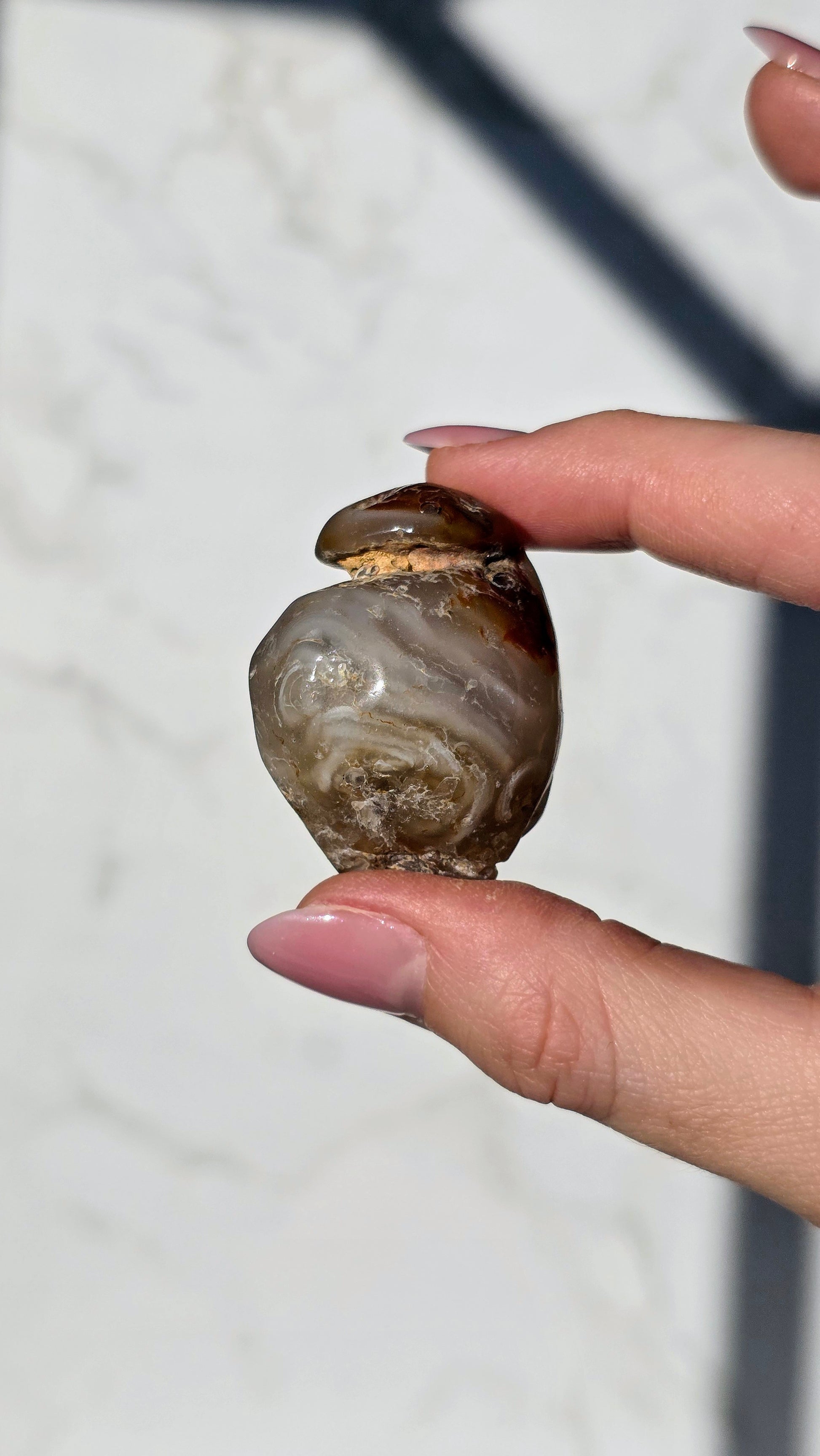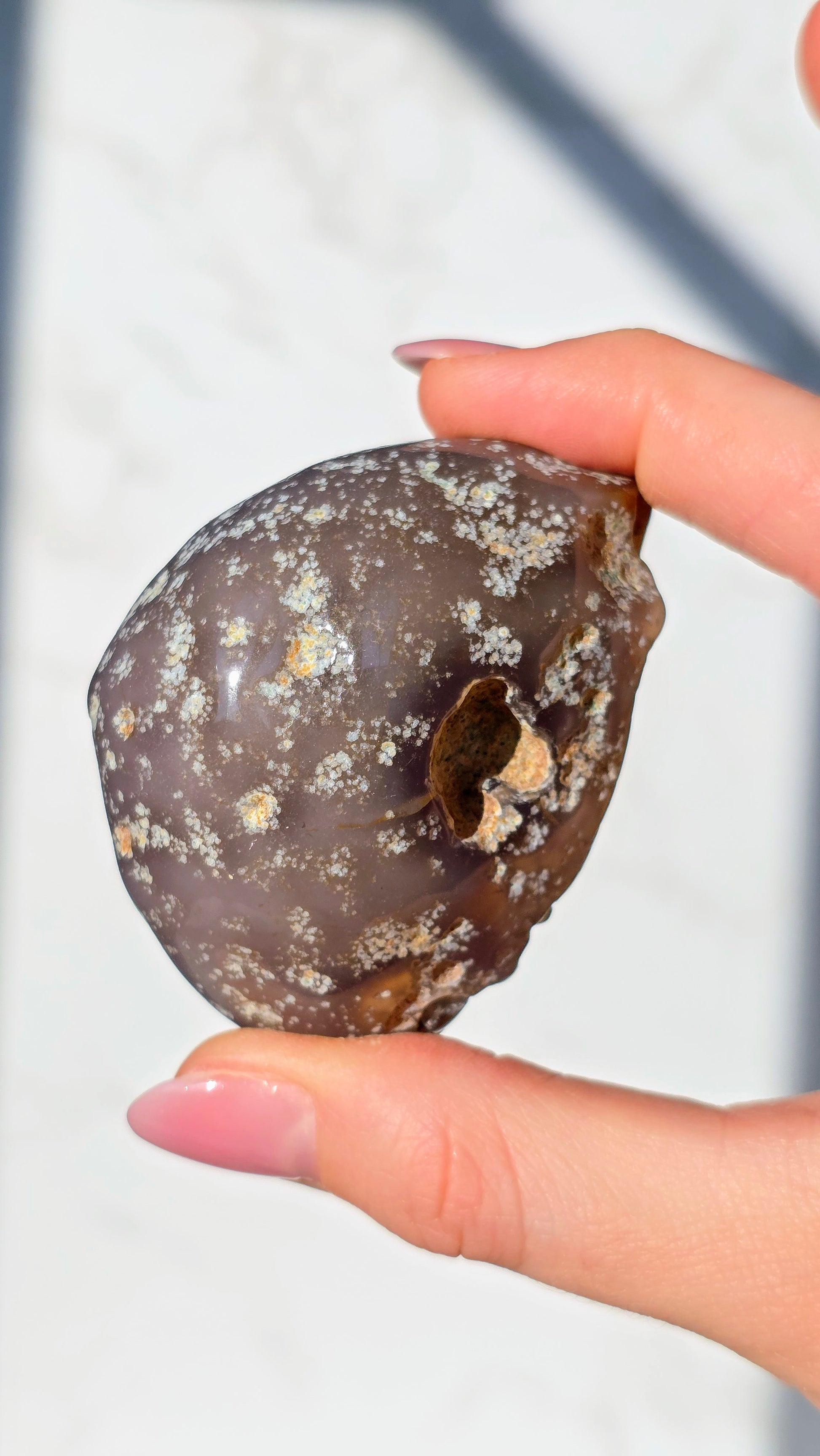 Der geheimnisvolle Enhydro Wasserachat birgt ein uraltes Naturwunder in sich: eingeschlossene Wasserblasen, die sich in der Bewegung sichtbar mitbewegen. Dieses Wasser ist zum Teil über 100 Millionen Jahre alt und wurde in mikroskopisch kleinen Hohlräumen eingeschlossen – ein echtes Wunder der Natur!