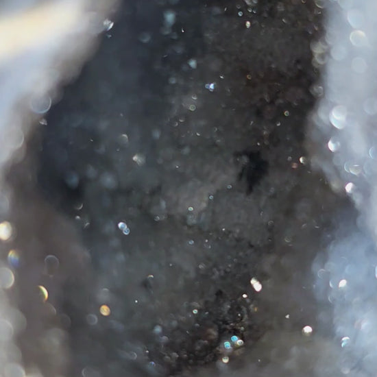 Grau-Schwarze Achat Geode aus Brasilien mit Glitzereffekt