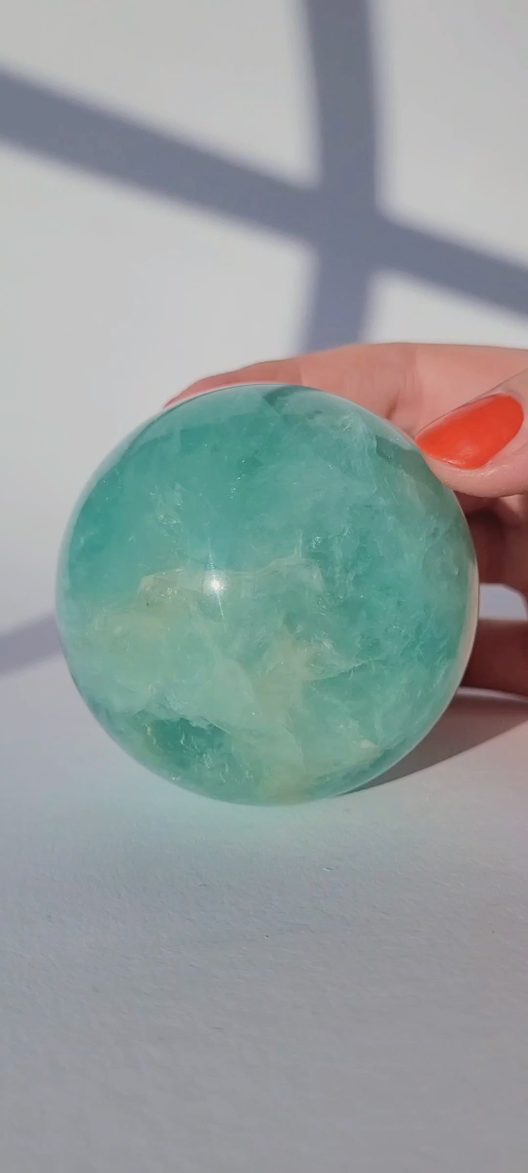 Du erhältst genau die abgebildete grüne Fluorit Kugel – ein echtes Natur-Unikat mit starker Leuchtkraft und einzigartiger Struktur. Der Stein hat eine Mohshärte von ca. 4 und sollte sorgsam behandelt werden, um seine glatte Oberfläche zu schützen.