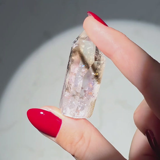 Bitte beachte: Da Kristalle empfindliche Naturprodukte sind, können vereinzelt kleine Kantenunregelmäßigkeiten oder winzige Absplitterungen vorhanden sein. Diese mindern weder die Schönheit noch die Energie des Steins. Alle Besonderheiten sind auf den Produktfotos erkennbar – du erhältst genau den Kristall, den du auf den Bildern siehst.