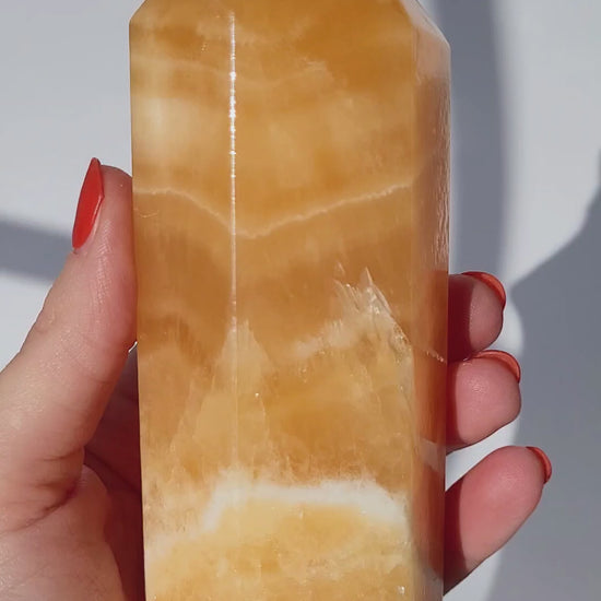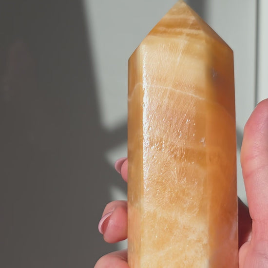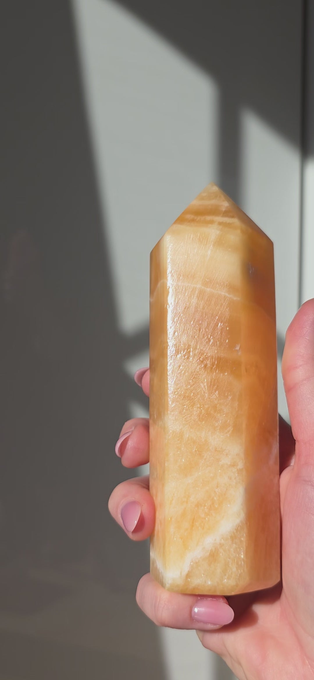 XL HQ Orange Calcit Turm – Ein kraftvolles Stück Erdenergie in leuchtendem Orange