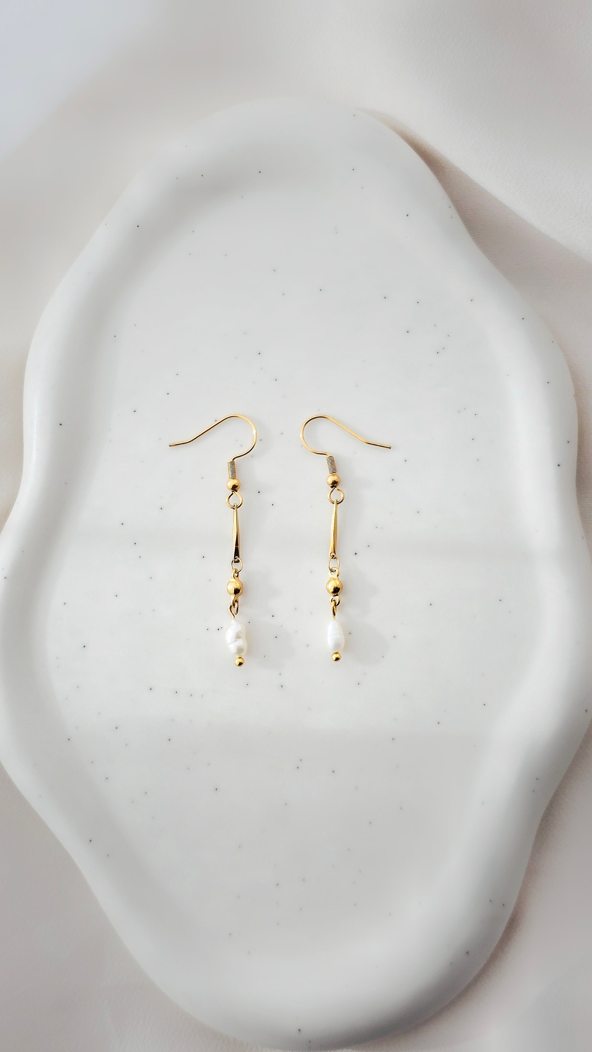 PURE DROP sind minimalistische Ohrringe mit ovalen Süßwasserperlen.