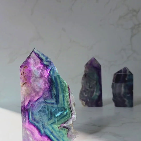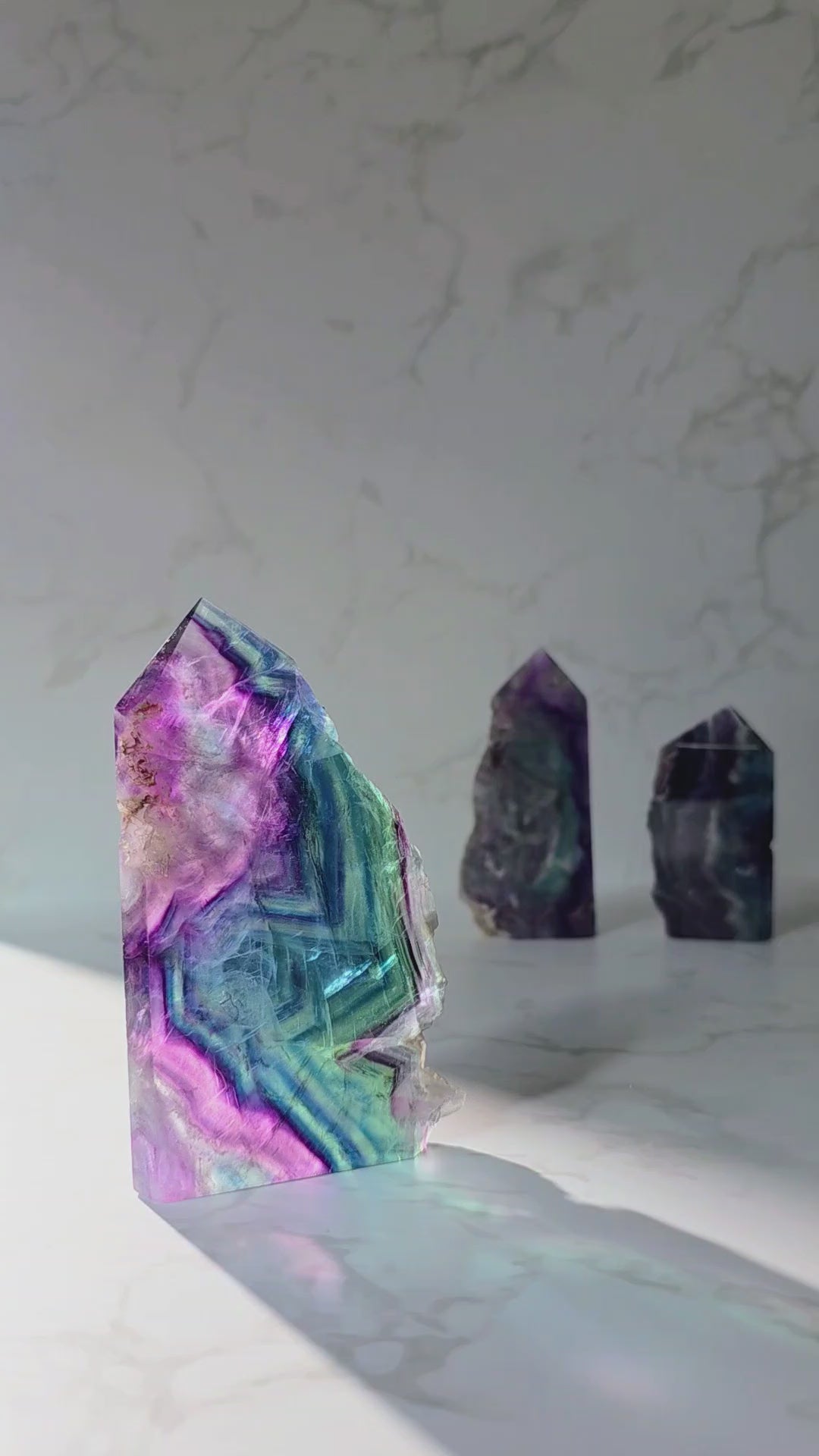 Regenbogenfluorit Turm – Farbmagie & natürliche Schönheit vereint