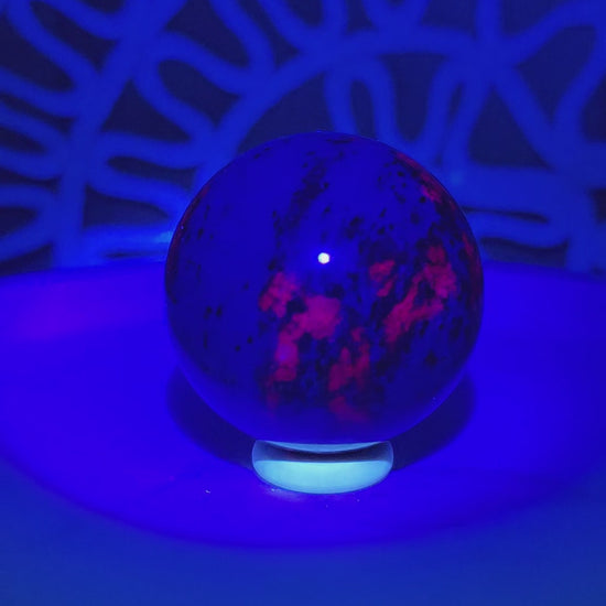 Rubin in Zoisit Kugel (fluorisziert unter UV-Licht)