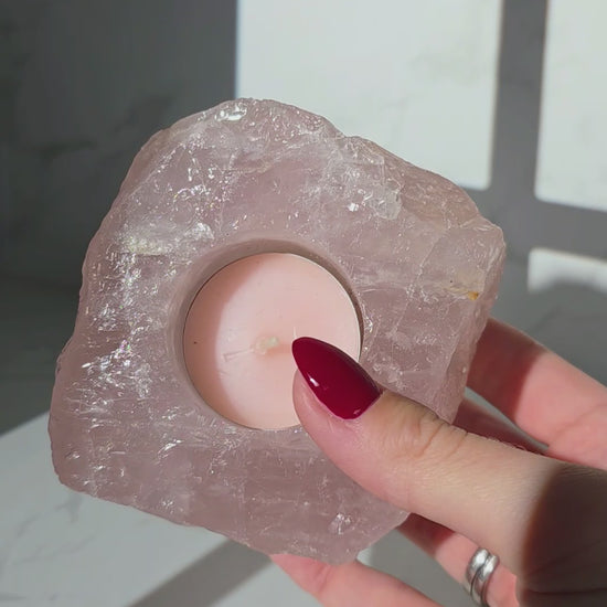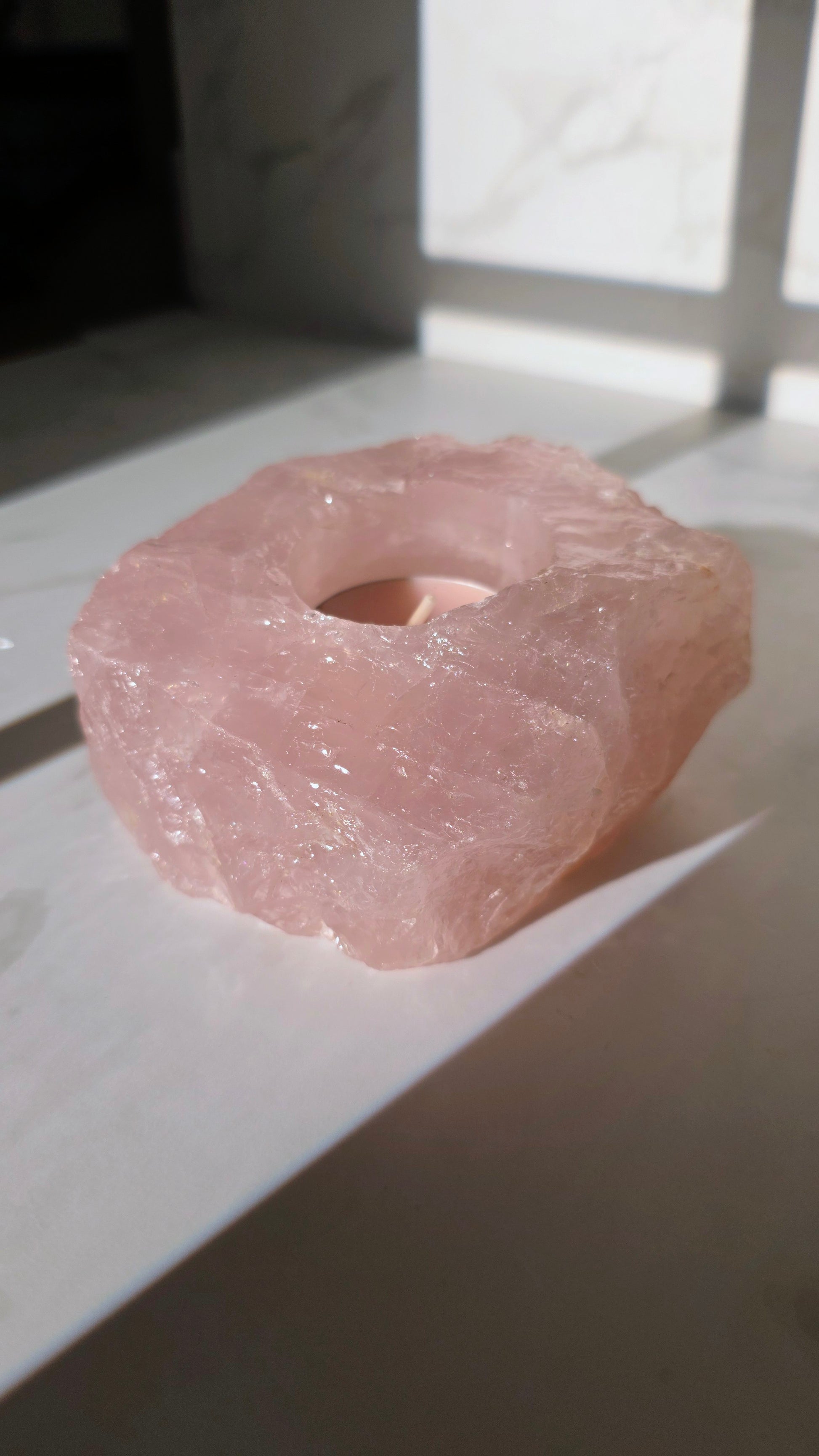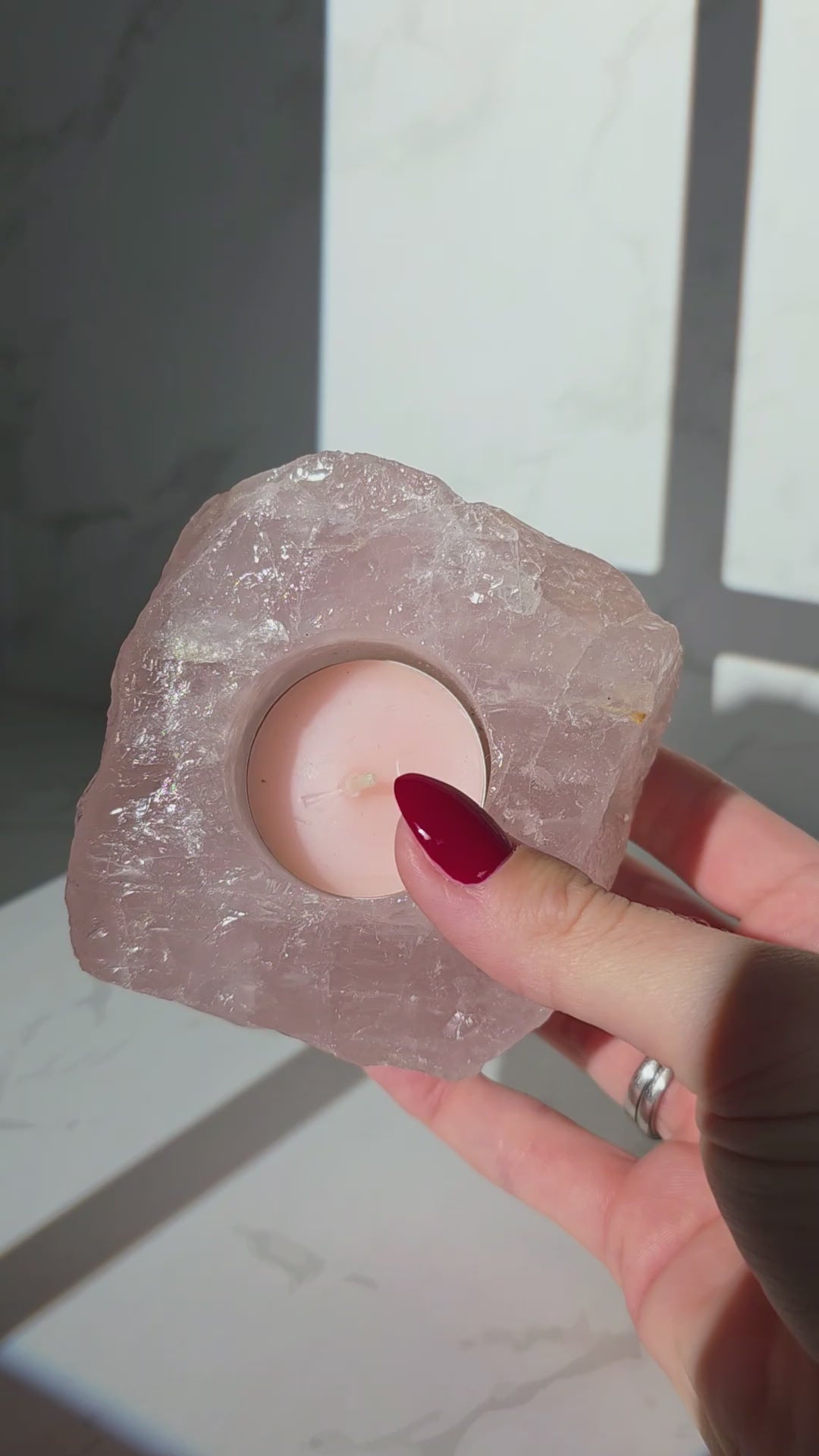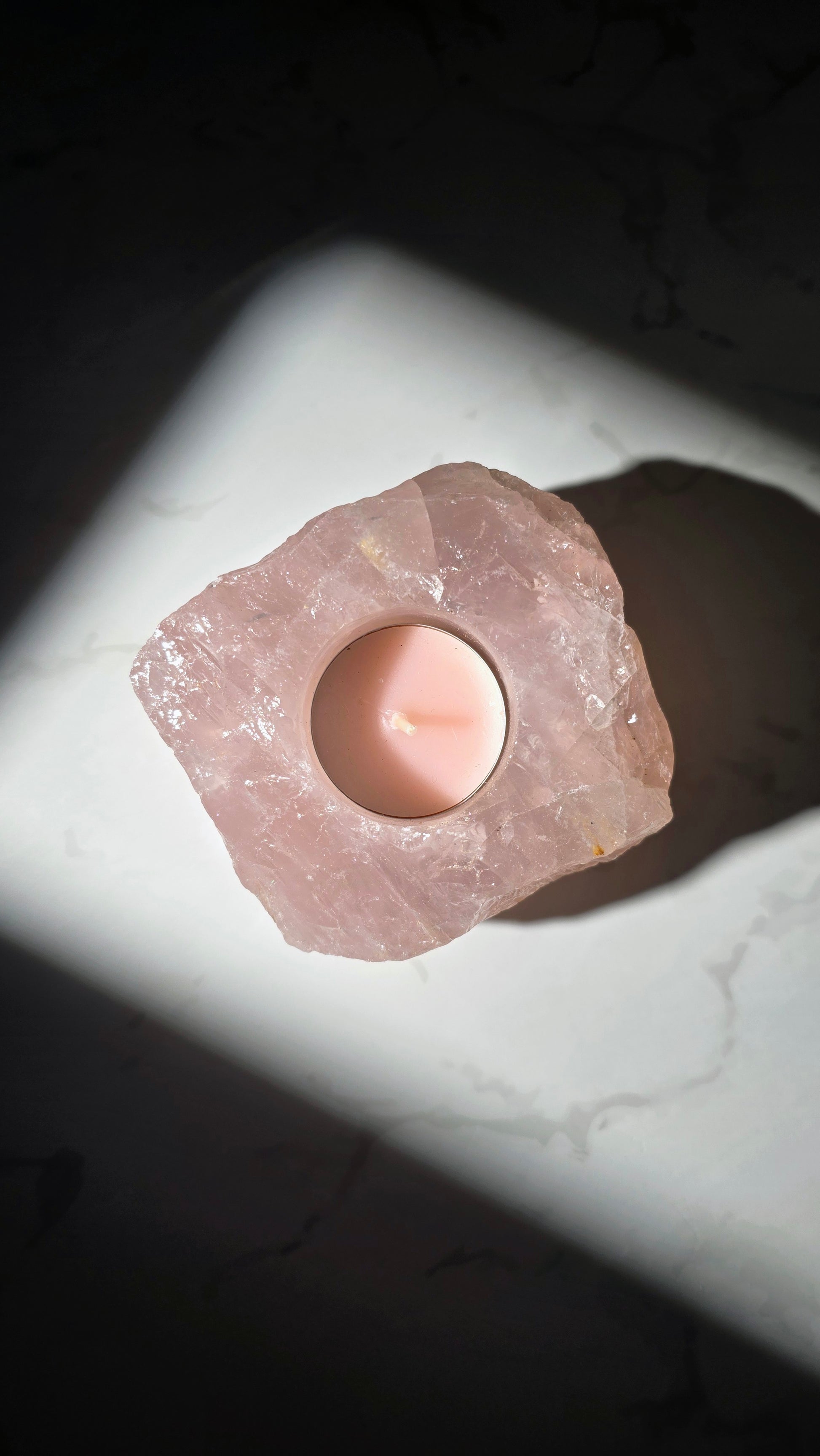 Rosenquarz Teelichthalter – Sanftes Licht & Liebevolle Energie