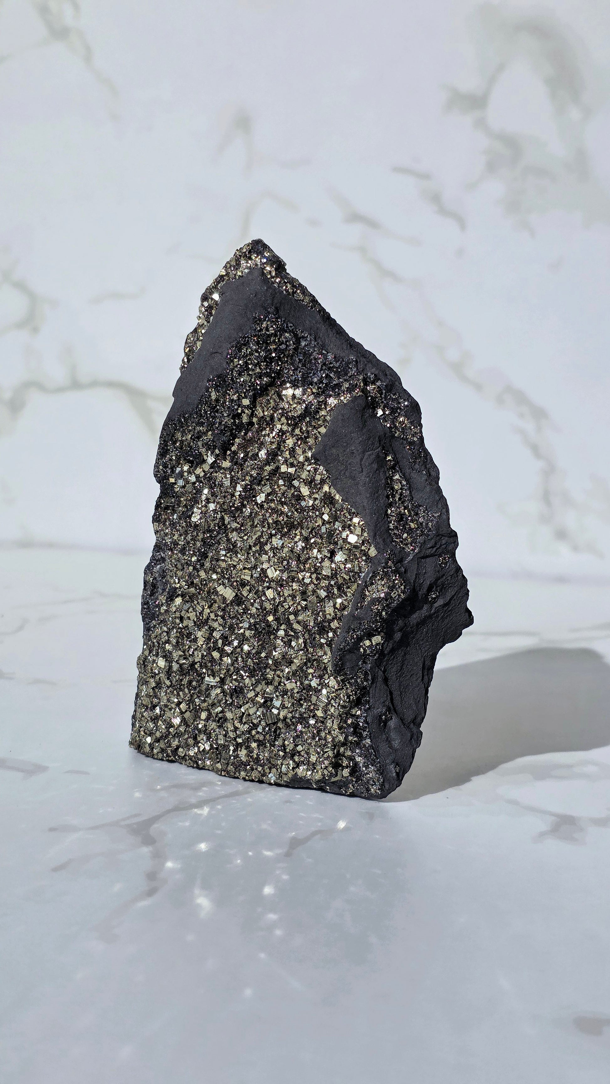 Schungit mit Pyrit Freiform – Erdung & Schutz in metallischer Harmonie