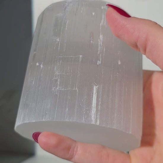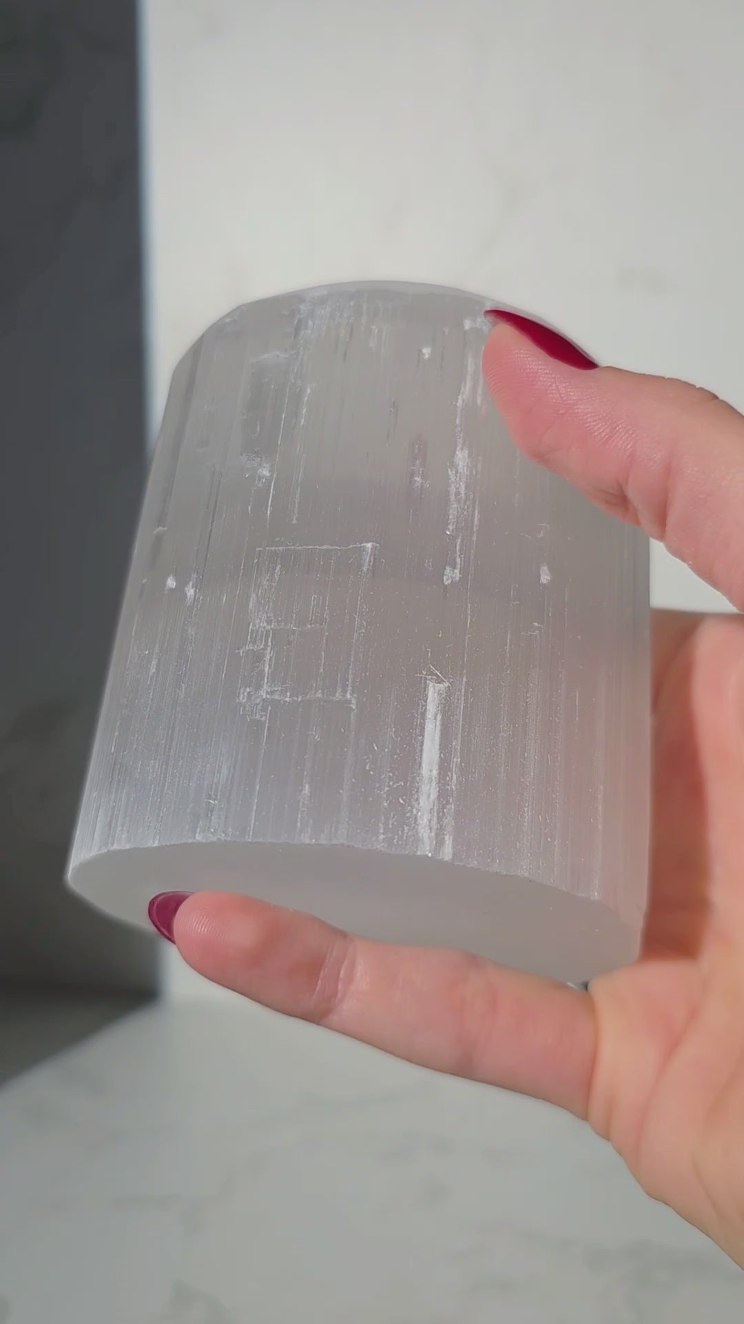 Selenit ist eine Varietät des Minerals Gips und wird aufgrund seines seidigen Glanzes auch „Engelsstein“ genannt. Er wurde nach der griechischen Mondgöttin Selene benannt, da sein Schimmer an Mondlicht erinnert. Selenit kommt weltweit vor, besonders in Mexiko, Marokko und den USA. Kristallliebhaber schätzen ihn für seine reinigende Wirkung und seine starke Verbindung zum spirituellen Bereich.
