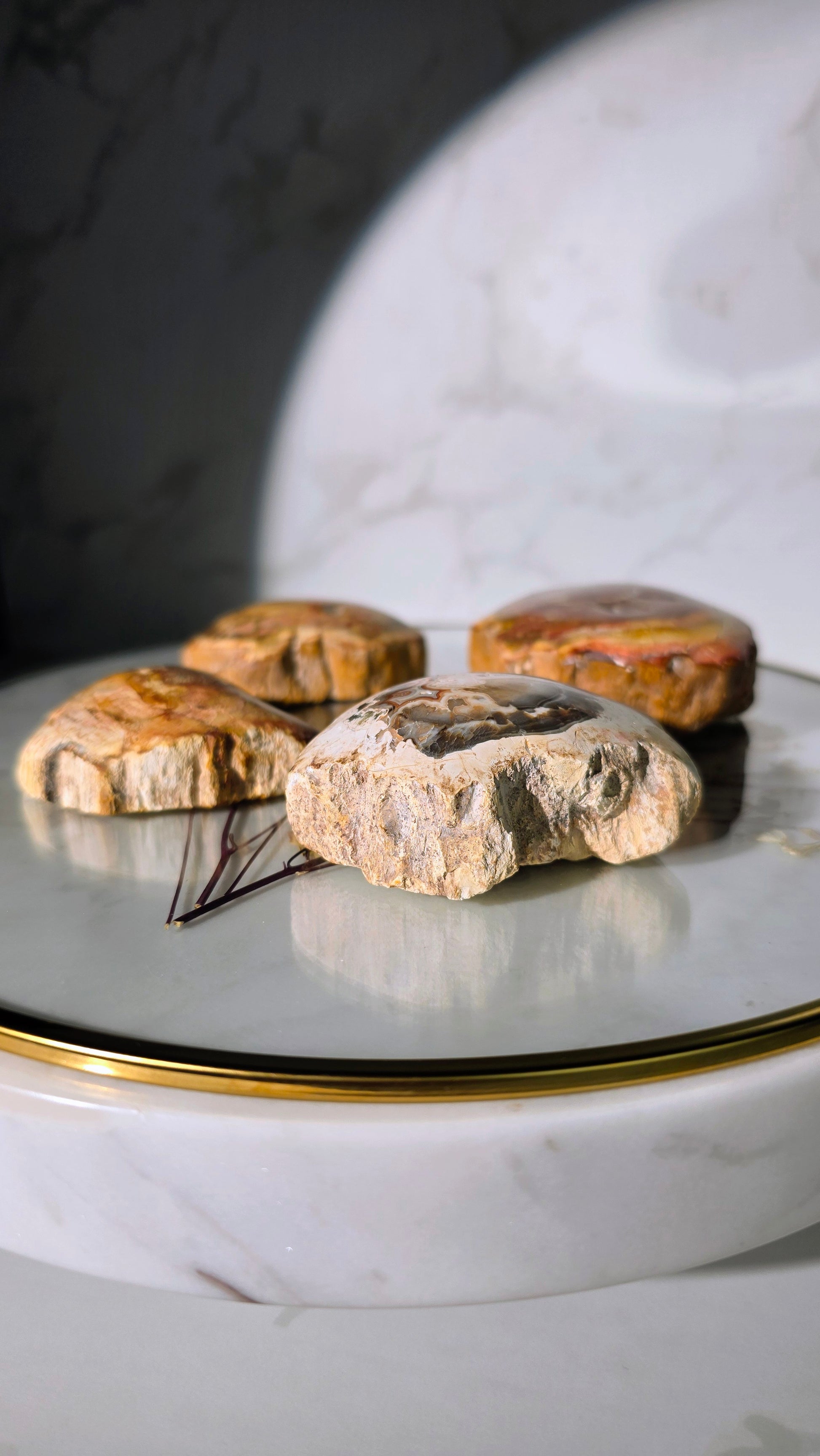 Die harmonische Mischung aus warmen, hellen und tiefen, dunklen Brauntönen macht jedes Stück zu einem einzigartigen Kunstwerk der Natur. Ob als dekoratives Highlight, Sammlerstück oder für energetische Zwecke – versteinertes Holz ist ein Symbol für Beständigkeit und natürliche Transformation.
